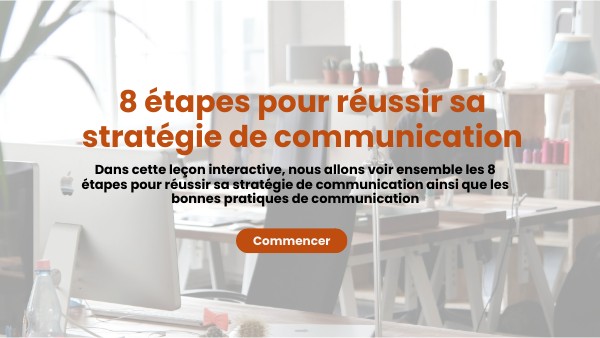 Dans cette leçon interactive, nous allons voir ensemble les 8 étapes pour réussir sa stratégie de communication ainsi que les bonnes pratiques de communication