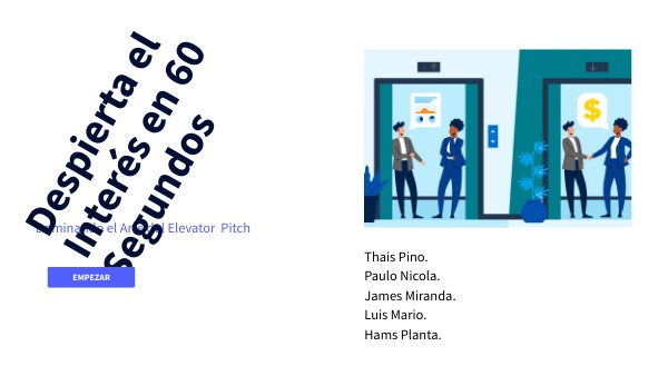 Introducción: Comienza con una introducción fuerte que capte la atención. Propuesta de Valor: Explica qué haces o qué ofreces, y por qué es único o valioso. Objetivo: Describe lo que esperas lograr o cuál es tu objetivo. Llamado a la Acción: Termina con un llamado a la acción, como una solicitud de reunión o de más información. Recuerda, la importancia radica en despertar el interés de la otra persona, no dar todos los detalles de tu propuesta.