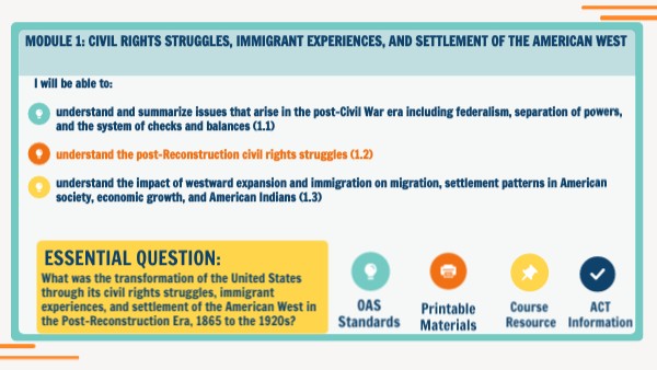Module 1: civil rights struggles, immigrant experiences, and settlement of the American West