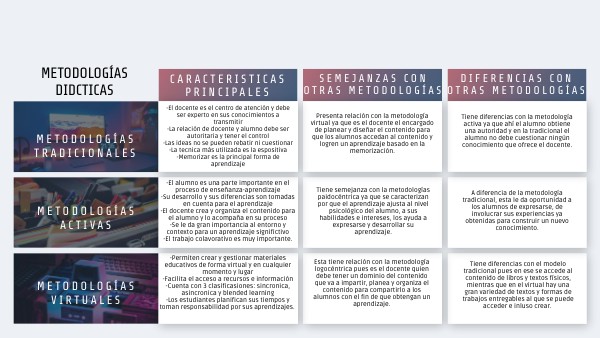 Tiene diferencias con la metodología activa ya que ahí el alumno obtiene una autoridad y en la tradicional el alumno no debe cuestionar ningún conocimiento que ofrece el docente.
