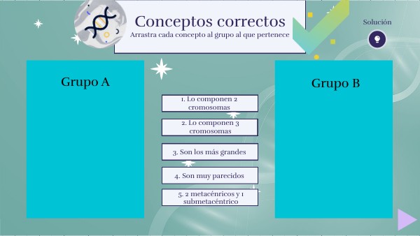 Elige el grupo de cromosomas al que pertenece cada frase.