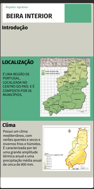 Neste trabalho vamos falar no ambito da disciplina de Geografia, sobre a região agrária, Beira Interior, esperamos que possam ficar a saber mais sobre esta região.