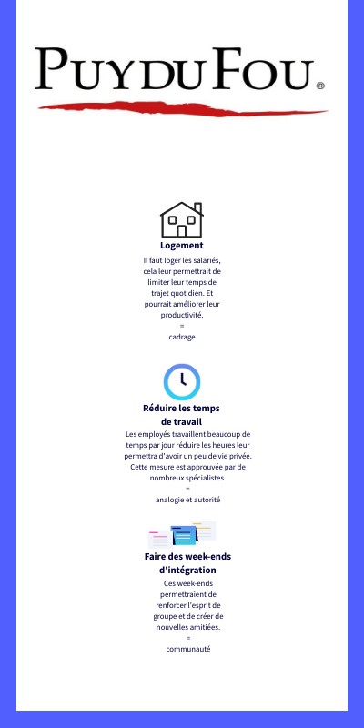 Les employés travaillent beaucoup de temps par jour réduire les heures leur permettra d'avoir un peu de vie privée. Cette mesure est approuvée par de nombreux spécialistes.= analogie et autorité