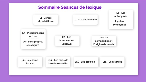 Sommaire Séances de lexique