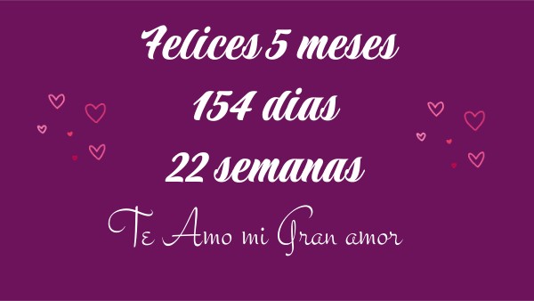 Holis mi amor, hoy es una de las fechas mas importantes para nosostro,lo estamos logrando amr, 5 meses, ya casi medio año nena, es smplemente extraordinario sentarse y ponerse a pensar, woooo, 5 meses llenos de milies de aventura, 5 meses tan rapido, algo lquisimo amor pero super hermosos, no lo puedo creer mi vida, todo lo que hemos logrado,si nos ponemos a pensar en todo estre tiempo, desde la primera salida que tuvimos, que no fa salida tal cual pero si, fui a tu casita con los nervios de conocer a tus papis, por cierto, que ricacarne asada, y el atrevimiento que me tome para darte un beso en la mejilla aun siendo amigos, y como fumos progresando, para nuestra segunda cita, porfin ya eramos novios, ese momento tan inexplicable que solo lo vivimo, esa gran respuesta que tanto deseaba, ese si que sin saber el futuro se convirtio en un destino, como llegaste a mi vida, o yo llegue a l tuya, como si fueramos creados el uno para el otro, como llegaste y le diste un giro rotundo de 270 grados,empezando a soñar un futuro a tu lado,como fuiste apareciendo en cada una de mis metas, de mis sueños, y tambien como se crearon nuevos, cada momento es un tatuaje sin tnta en el alma, ese primer abrazo, esa primera risa, ese primer contacto visal, ese primer beso, ese primer TE QUIERO, cada cosa esta presente en mi, en nosostros, en este inigualable presente, cada movimiento, cada momento.