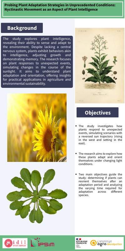 The study explores plant intelligence, revealing their ability to sense and adapt to the environment. Despite lacking a central nervous system, plants exhibit behaviors akin to intelligence, adjusting growth and demonstrating memory. The research focuses on plant responses to unexpected events, simulating changes in the course of the sunlight. It aims to understand plant adaptation and orientation, offering insights for practical applications in agriculture and environmental sustainability.