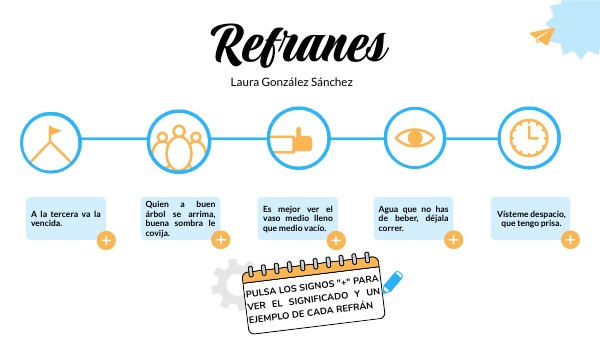 Pulsa los signos "+" para ver el significado y un ejemplo de cada refrán