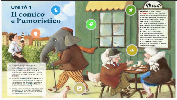 Comico e umoristico sono spesso usati come sinonimi, ma hanno due significati differenti. Comico: genera nel lettore una risata aperta, immediata e spontanea, che nasce da situazioni buffe e inattese. Umoristico: genera un sorriso, a volte anche amaro, dietro cui si nascondono riflessioni su temi importanti. é una forma più sottile di comicità, che nasce da una situazione comica in cui, però, si possono cogliere anche aspetti problematici e comportamenti sbagliati.