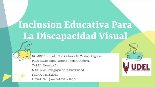 NOMBRE DEL ALUMNO: Elizabeth Castro Delgado. PROFESOR: Edna Patricia Tapia Gutiérrez. TAREA: Semana 5. MATERIA: Pedagogía de la Diversidad. FECHA: 14/12/2023. LUGAR: San José Del Cabo, B.C.S.