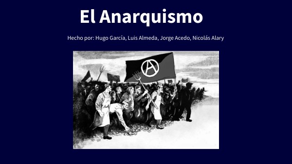 - Nombre dado a cualquier filosofía política, económica o social que llame a la oposición y la abolición del Estado y por extensión, al rechazo del gobierno político y de su autoridad, considerada impuesta sobre el individuo, innecesaria, peligrosa, autoritaria y nociva.