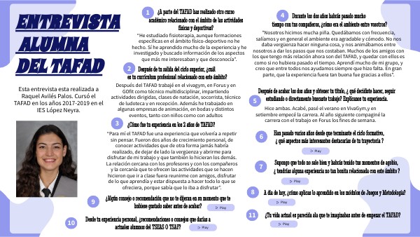 Esta entrevista esta realizada a Raquel Avilés Palos. Cursó el TAFAD en los años 2017-2019 en el IES López Neyra.