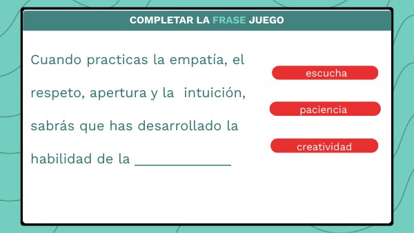 Cuando practicas la empatía, el respeto, apertura y la intuición, sabrás que has desarrollado la habilidad de la _____________