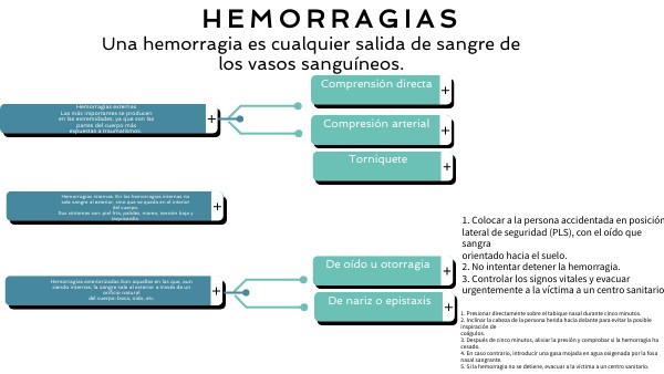 Hemorragias externasLas más importantes se producen en las extremidades, ya que son las partes del cuerpo más expuestas a traumatismos.