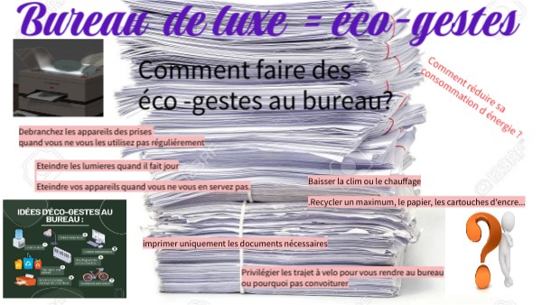 Baisser la clim ou le chauffage .Recycler un maximum, le papier, les cartouches d'encre...