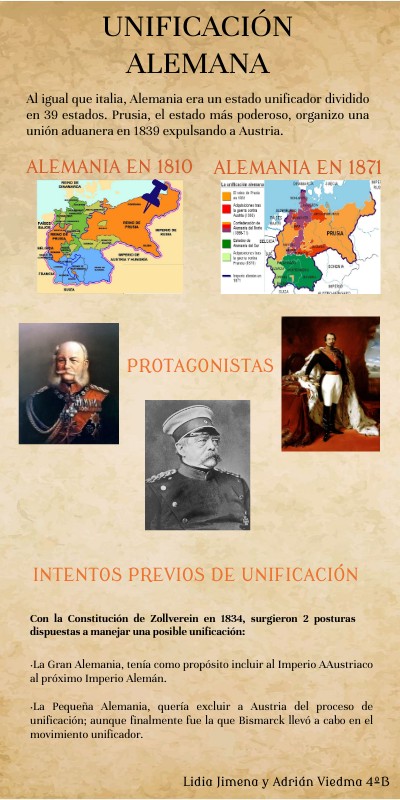 Al igual que italia, Alemania era un estado unificador dividido en 39 estados. Prusia, el estado más poderoso, organizo una unión aduanera en 1839 expulsando a Austria.