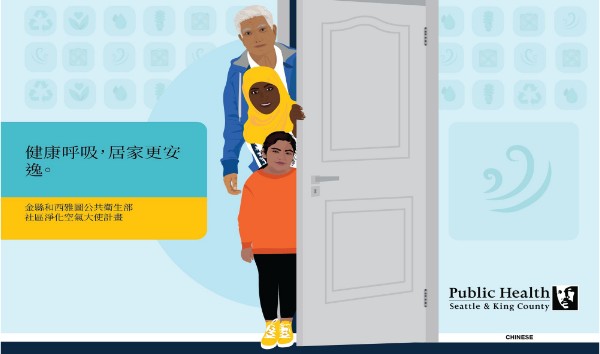 本項目得到了金縣和西雅圖公共衛生部的“氣候與健康公平倡議”和“全國縣市衛生官員協會”(NACCHO) 的資助,並得到了疾病控制及預防中心(CDC)的“氣候與健康計劃”的支持。 I圖像由 What Else Designs 製作。 瀏覽 Puget Sound Clean Air Agency 的網頁,瞭解您所在地區室外空氣質量的最新信息 : https://www.pscleanair.gov/ (僅有英文和西班牙語版本)