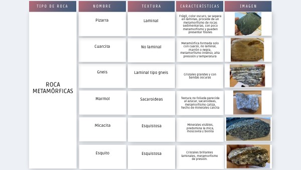 Metamórfica formada solo con cuarzo, no laminal, marrón o negra, metamorfismo intenso, alta presioón y temperatura
