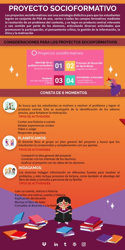 Los proyectos socioformativos son una estrategia didáctica para que los estudiantes logren un conjunto de PDA de uno, varios o todos los campos formativos mediante la resolución de un problema del contexto, y se logre un producto central relevante y con sentido por parte de los alumnos, articulando diversas actividades que promueven la participación, el pensamiento crítico, la gestión de la información, la ética y la motivación
