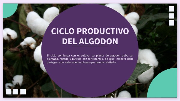 El ciclo comienza con el cultivo. La planta de algodon debe ser plantada, regada y nutrida con fertilizantes, de igual manera debe protegerse de todas auellas plagas que puedan dañarla.