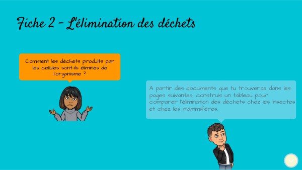 A partir des documents que tu trouveras dans les pages suivantes, construis un tableau pour comparer l’élimination des déchets chez les insectes et chez les mammifères.