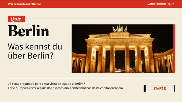 Já estás preparado para a tua visita de estudo a Berlim? Faz o quiz para rever alguns dos aspetos mais emblemáticos desta capital europeia.