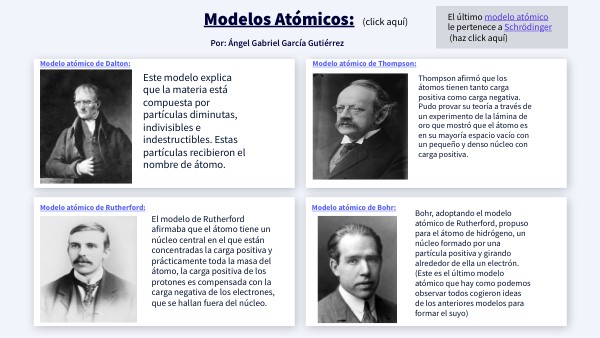 Infografía de los modelos atómicos.