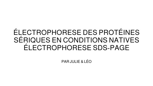 éLECTROPHORESE DES PROTÉINES SÉRIQUES EN CONDITIONS NATIVES éLECTROPHORESE SDS-PAGE