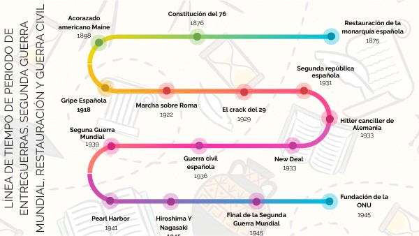 LÍNEA DE TIEMPO DE PERIODO DE ENTREGUERRAS. SEGUNDA GUERRA MUNDIAL, RESTAURACIÓN Y GUERRA CIVIL