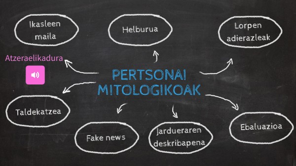 Pertsonai mitologikoen aurkezpena. - Nabigatzaile ezberdinak erabiliz, taldeka lan egiten, munduko pertsonai mitologikoen inguruko informazioa bilatu. - Herrialde ezberdin bat aukeratu behar dute eta Euskal Herriko pertsonai mitologikoekiko antzekotasunak eta ezberdintasunak bilatu. - Informazioa bilatzerakoan, ondo aztertu, pentsamendu kritikoa piztu, partekatu klasekideekin….
