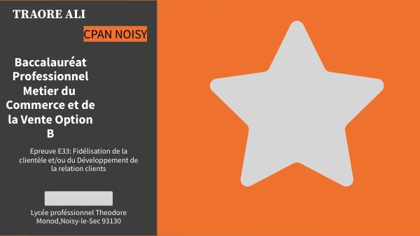 Epreuve E33: Fidélisation de la clientèle et/ou du Développement de la relation clients Lycée proféssionnel Theodore Monod,Noisy-le-Sec 93130