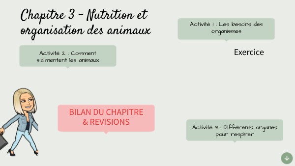 BILAN 1 : Pour grandir et se développer, les animaux ont besoin d’énergie. Ils fabriquent cette énergie en prélevant dans leur milieu de la matière organique (glucose) et de la matière minérale (eaux et éléments minéraux) : c’est la nutrition. Les cellules animales vont utiliser ces éléments et les convertir en énergie, lors d’une transformation chimique, permettant ainsi leur fonctionnement.