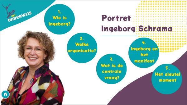 Ingeborg heeft altijd gewerkt in sectoren waar ze vanuit haar opleiding als Sociaal Pedagogisch Hulpverlener in beginsel niet voor was opgeleid. Rode draad in haar werk is altijd het versterken van ontwikkeling en ontwikkelkansen en dan het liefst voor die groepen waarbij dat niet vanzelf gaat. Ze doet dit vanuit de relatie met mensen en verbinding met hun perspectief. Dat vond ze ook het spannendst toen ze de stap naar volledig bestuurder maakte. Zou het haar, met de afstand die de rol toch met zich meebrengt en zeker als het gaat om hoe direct je invloed is, ook lukken om zaken in beweging te krijgen en ‘de wereld een beetje beter te maken? Ingeborg werkt graag vanuit vertrouwen en verbinding. Omdat ze is opgeleid als generalist is er voor haar heel veel samenhang in wat er is en wat er moet. Dat maakt dat ze eigenlijk altijd wel kansen ziet om meer dan 1 vlieg tegelijk te vangen. Dat maakt overigens ook dat ze het soms ook lastig vindt om de stappen wat kleiner te maken of niet alles tegelijk op te pakken dus dat is voor de mensen die met haar werken niet altijd even makkelijk. Ze heeft dan ook graag mensen om zich heen die haar aanvullen of spiegelen op de dingen waar ze minder sterk in is. Als je Ingeborg vraagt wat ze echt belangrijk vindt als bestuurder dan is dat eigenlijk niet anders dan wat ze belangrijk vindt als mens: respect, integriteit en vertrouwen. Ze vindt dat we in het onderwijs één van de belangrijkste maatschappelijke opdrachten hebben, de basis leggen voor de toekomst van onze kinderen. Een grote verantwoordelijkheid die we invullen met inzet van veel publiek geld. Het is in haar ogen dan ook volkomen vanzelfsprekend dat we rekenschap afleggen over hoe we dat doen en hoe ons dat lukt. Ze vindt het soms ingewikkeld als er bijv. in nieuw beleid of in de media vanuit wantrouwen lijkt te worden gekeken naar onze sector en de rol die wij daar als bestuurders in hebben. Dat maakt haar overtuiging dat de waarden waarop we Leve het Onderwijs bouwen het beste antwoord is overigens alleen maar sterker.