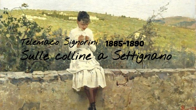 Sulle colline a Settignano è un paesaggio che Signorini dedicò ai luoghi della sua infanzia che riscoprì poi durante la maturità. Questo dipinto interpreta il paesaggio con un momento di serena quotidianità grazie alla tersa atmosfera primaverile. Inoltre la figura della ragazza rimanda ad una visione felice dell’adolescenza, primavera della vita. Signorini ritrasse la giovane con evidente partecipazione emotiva.
