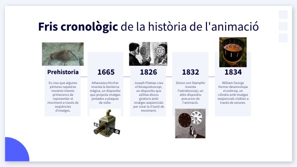 Joseph Plateau crea el fenaquistoscopi, un dispositiu que utilitza discos giratoris amb imatges seqüencials per crear la il·lusió de moviment.
