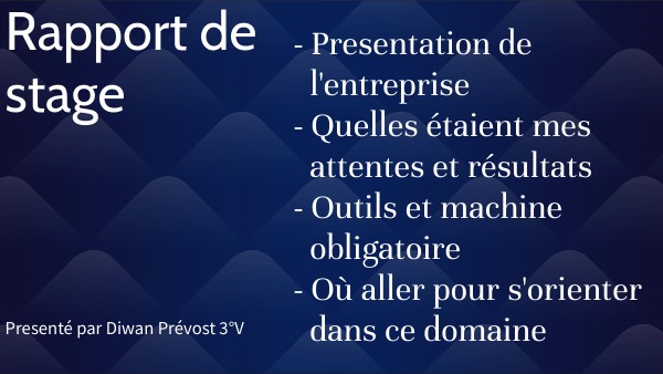 - Presentation de l'entreprise - Quelles étaient mes attentes et résultats - Outils et machine obligatoire - Où aller pour s'orienter dans ce domaine