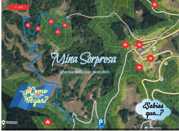 Para garantizar una visita agradable para todos, le solicitamos que estacione su vehículo en el aparcamiento habilitado junto a la depuradora de agua, antes de iniciar su recorrido por la Mina Sorpresa. Este es el mejor lugar para dejar su coche, ya que el recorrido es circular y facilita la vuelta al mismo punto. Al aparcar en este espacio designado, evitaremos molestias a los vecinos y mantendremos el orden en la zona. Por favor, no estacione en otras áreas que puedan interferir con el acceso de residentes o causar inconvenientes. ¡Gracias por su colaboración!