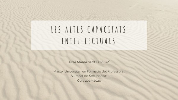 - Complexitat de les Altes Capacitats Intel·lectuals.