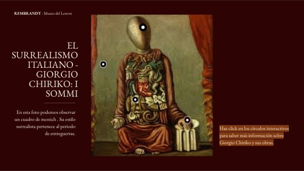 Haz click en los círculos interactivos para saber más información sobre Giorgio Chiriko y sus obras.