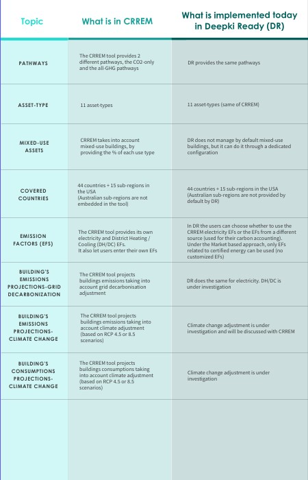 DR offers the same filters of CRREM.Other filters can be added according to project specifications