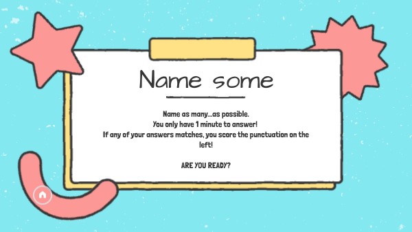 Name as many...as possible. You only have 1 minute to answer! If any of your answers matches, you score the punctuation on the left! ARE YOU READY?
