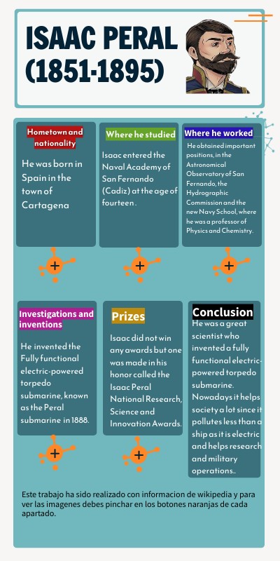 He invented the Fully functional electric-powered torpedo submarine, known as the Peral submarine in 1888.