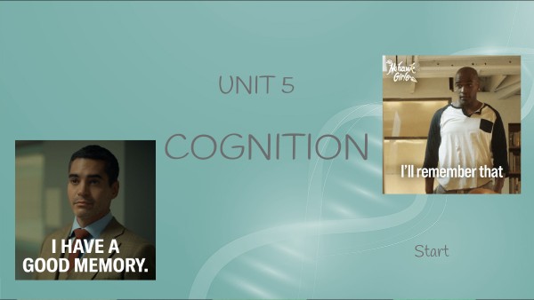 1.Introduction to Memory 2. Encoding 3. Storing 4. Retrieving 5. Forgetting and Memory Distortion 6. Biological Bases of Memory 7. Introduction to Thinking and Problem Solving 8. Biases and Errors in Thinking 9. Intorduction to Intelligence 10. Psychometric Principles and Intelligence Testing 11. Componenets of Language