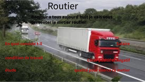 Bonjour a tous aujourd'huit je vais vous presenter le metier routier
