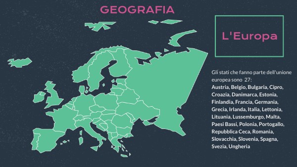 Gli stati che fanno parte dell'unione europea sono 27: Austria, Belgio, Bulgaria, Cipro, Croazia, Danimarca, Estonia, Finlandia, Francia, Germania, Grecia, Irlanda, Italia, Lettonia, Lituania, Lussemburgo, Malta, Paesi Bassi, Polonia, Portogallo, Repubblica Ceca, Romania, Slovacchia, Slovenia, Spagna, Svezia, Ungheria