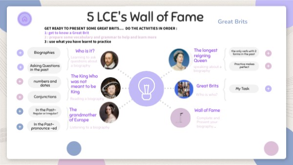 GET READY TO PRESENT SOME GREAT BRITS.... DO THE ACTIVITIES IN ORDER : 1: get to know a Great Brit 2 : prepare some vocabulary and grammar to help and learn more 3 : use what you have learnt to practice