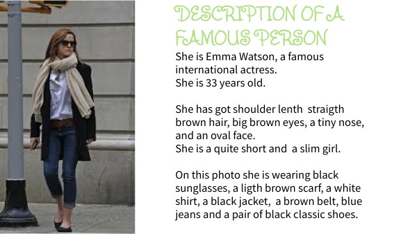 Description of a famous person.Emma Watson