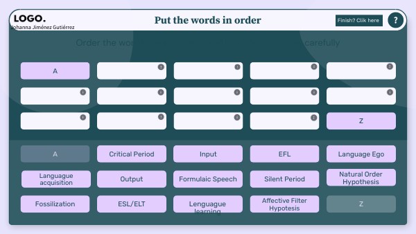 Order the words alphabetically and read the concepts carefully