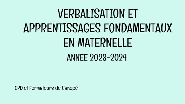 Verbalisation et apprentissages fondamentaux en maternelle et les conditions de sa mise en oeuvre