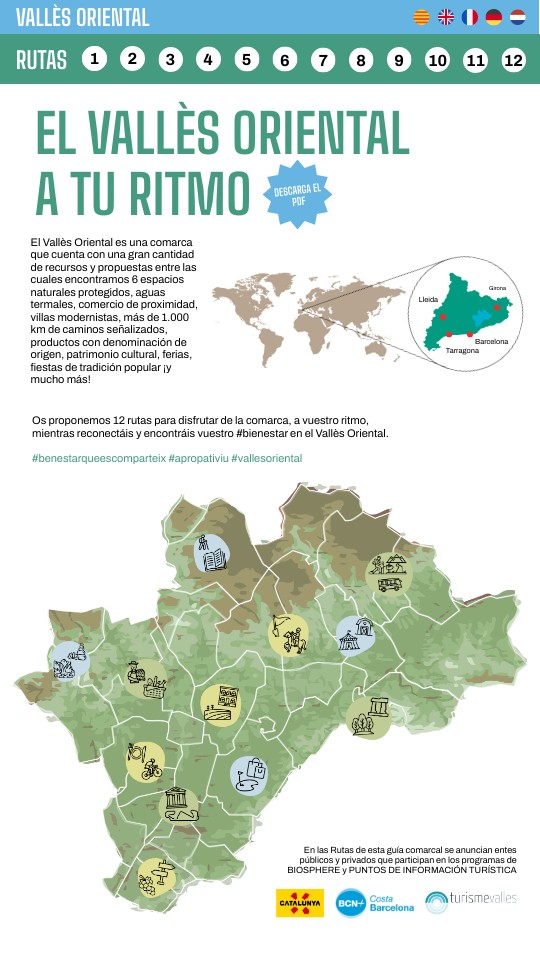 Os proponemos 12 rutas para disfrutar de la comarca, a vuestro ritmo, mientras reconectáis y encontráis vuestro #bienestar en el Vallès Oriental. #benestarqueescomparteix #apropativiu #vallesoriental