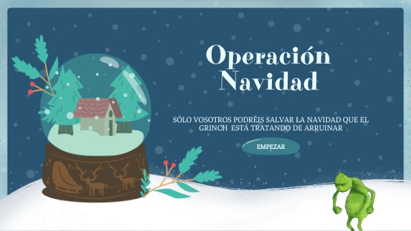 Os encontráis en el pueblo Navideño, y acabáis de descubrir que el Grinch está tramando arruinar la Navidad. Vuestra misión es resolver desaf´íos científicos para desbaratar los planes del Grinch y salvar la Navidad